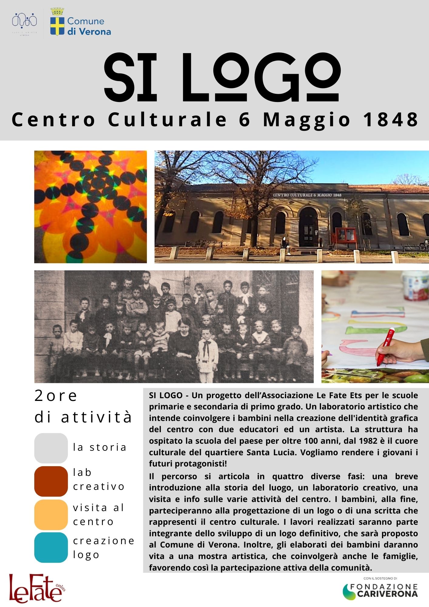 Gestione e valorizzazione degli spazi con individuati congiuntamente alla Circoscrizione 4^. Creazione di reti di prossimità e di inclusione dedicate, in via principale, ad anziani e a persone diversamente abili. Corsi di formazione per giovani che desiderano prendersi cura di bambini in aiuto alle famiglie. Consulenze dedicate alle famiglie. Laboratori pedagogici.