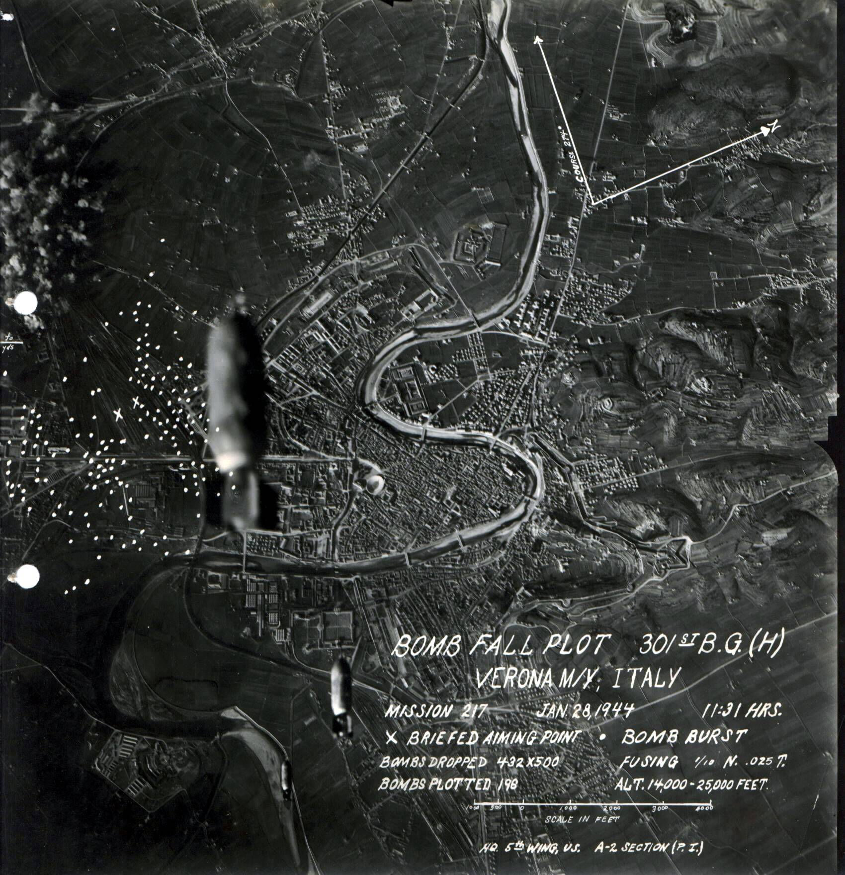 Il 28 gennaio del 1944 poco prima di mezzogiorno, 120 bombardieri quadrimotori americani B17 del 301st Bomb Group, con l’obiettivo di colpire la stazione di Porta Nuova per bloccare le attività ferroviarie dei nazisti verso il Brennero, sganciarono da una quota di circa 10mila metri centinaia di bombe causando morti, feriti e macerie.