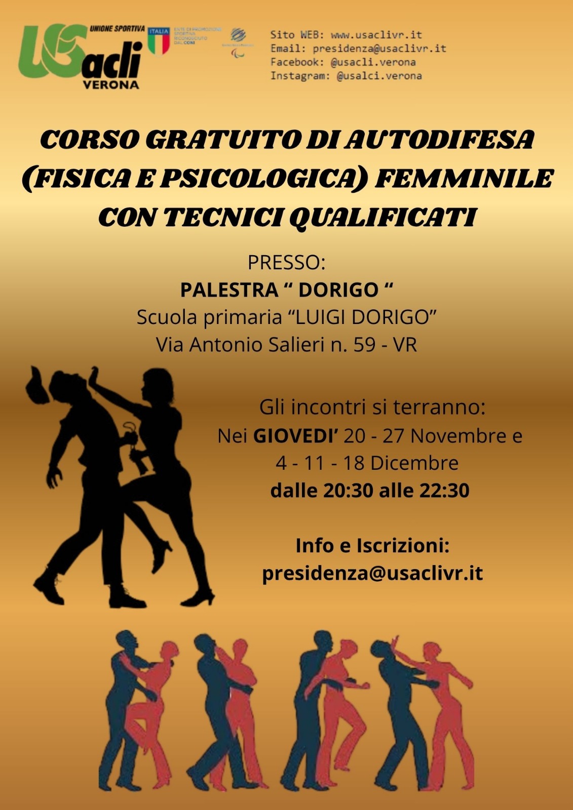 Gli incontri si terranno presso la palestra “Dorigo” della Scuola primaria “Luigi Dorigo”, in via Antonio Salieri 59 a Verona. Il corso è programmato per i giovedì 20 e 27 novembre, e 4, 11 e 18 dicembre, con orario dalle 20:30 alle 22:30.