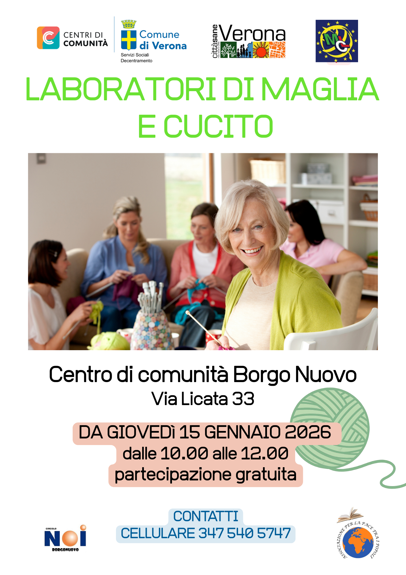 Il Centro di Comunità di Borgo Nuovo (via Licata n°33, Verona) organizza dei laboratori di maglia e cucito.