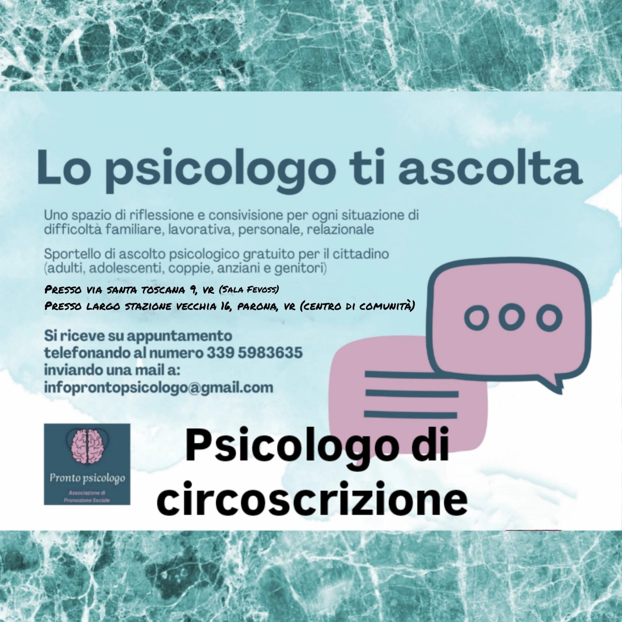 Prenotazioni al numero 339 5983635 o inviando una mail a: infoprontopsicologo@gmail.com
