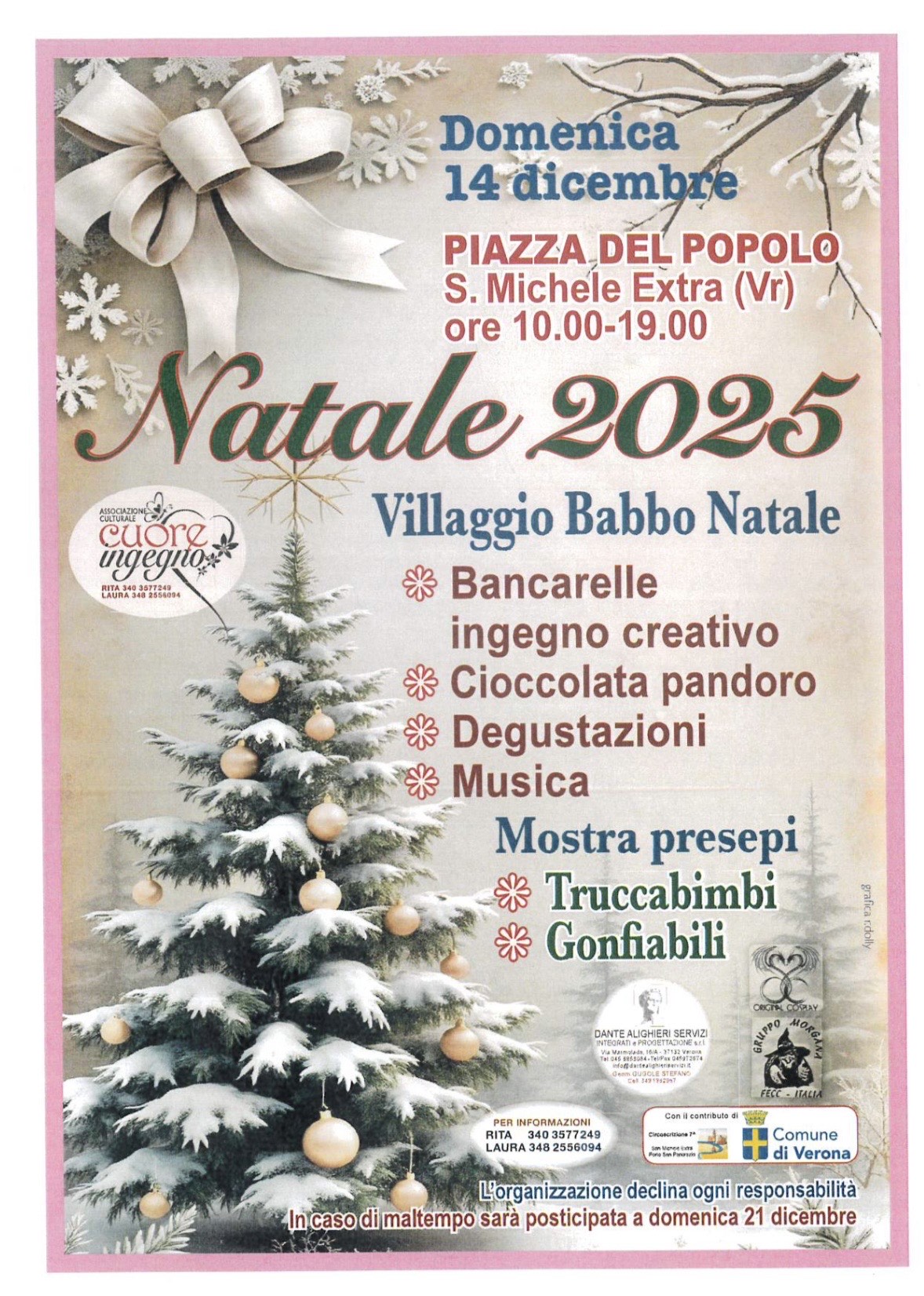 San Michele Extra si prepara a vivere uno degli appuntamenti più attesi dell’anno: “Natale 2025 in Piazza del Popolo”, in programma domenica 14 dicembre dalle ore 10.00 alle 19.00. L’evento, organizzato dall’Associazione Culturale Cuore Ingegno con il contributo del Comune di Verona, trasformerà l’intera piazza in un vero e proprio Villaggio di Babbo Natale, ricco di luci, colori e iniziative pensate per grandi e piccoli.