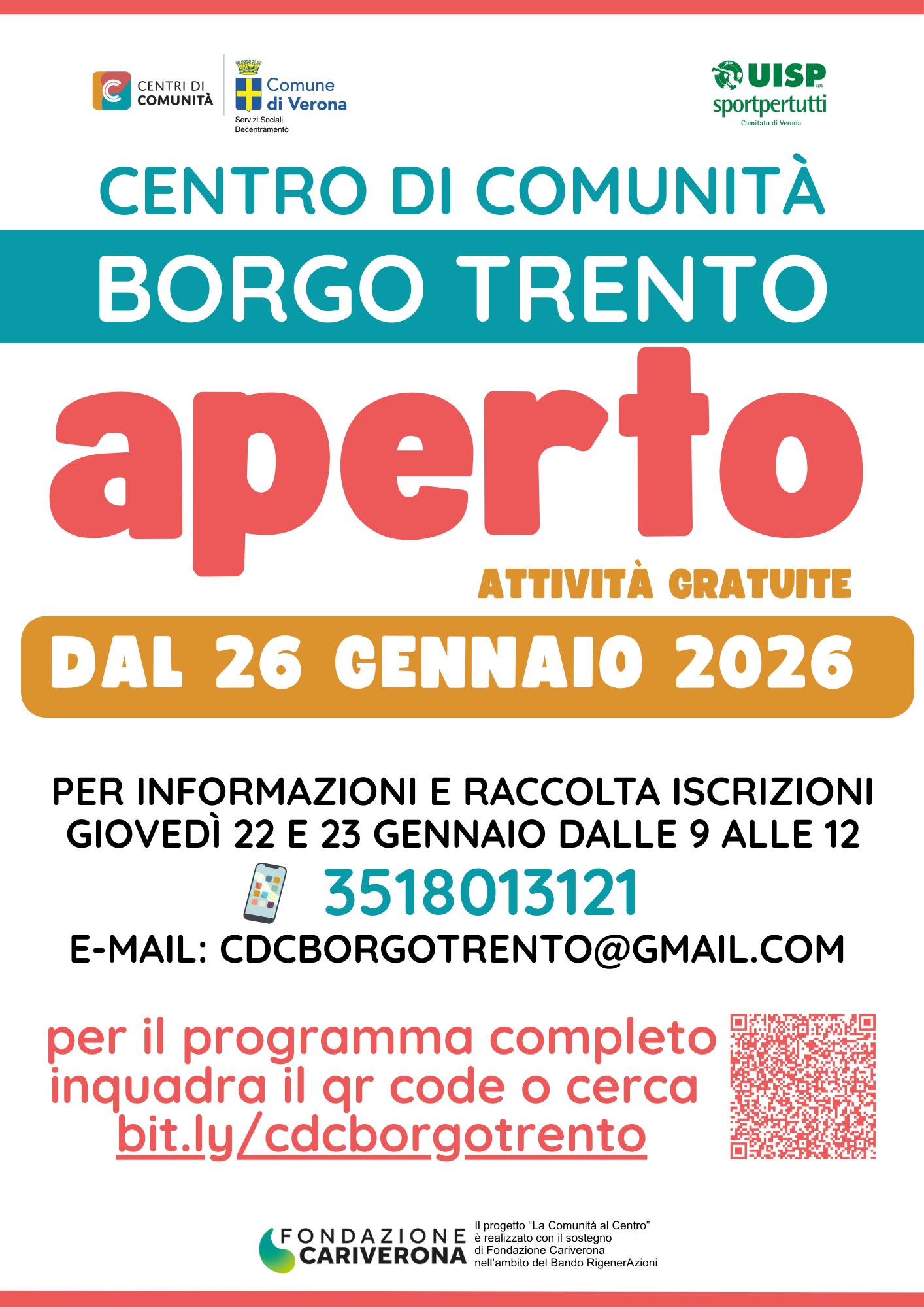 Il Comune di Verona, in collaborazione con Aribandus Cooperativa Sociale e grazie al Bando di Fondazione Cariverona RigenerAzioni, ha allestito un luogo speciale che sarà un centro di attività per tutte le età a partire dal 22 gennaio 2026.