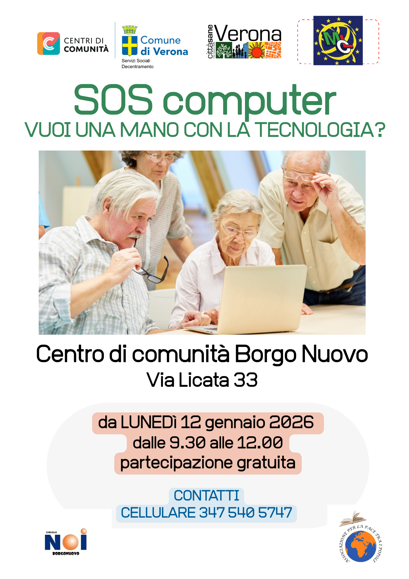 Il Centro di Comunità Borgo Nuovo (via Licata n°33, Verona) organizza un corso dedicato all'utilizzo del computer.