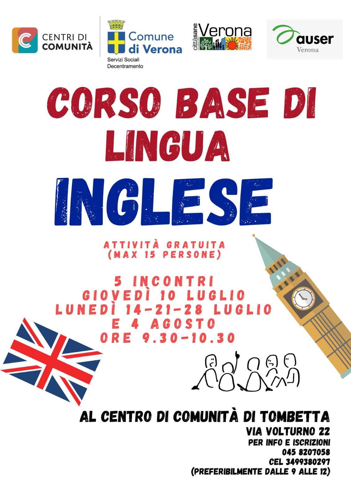 Corso base di lingua inglese a partire dal 10 luglio alle ore 9.30 presso il C.d.C. di Tombetta in Borgo Roma