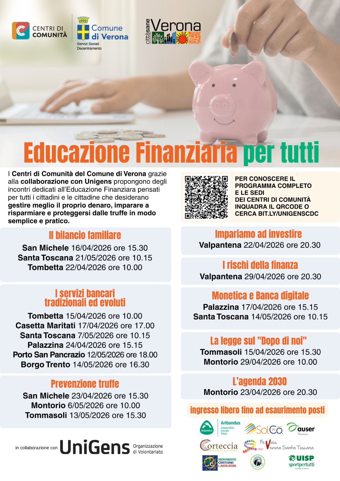 Percorso di Educazione finanziaria che sarà erogato dai volontari di UNIGENS presso i Centri di Comunità del territorio