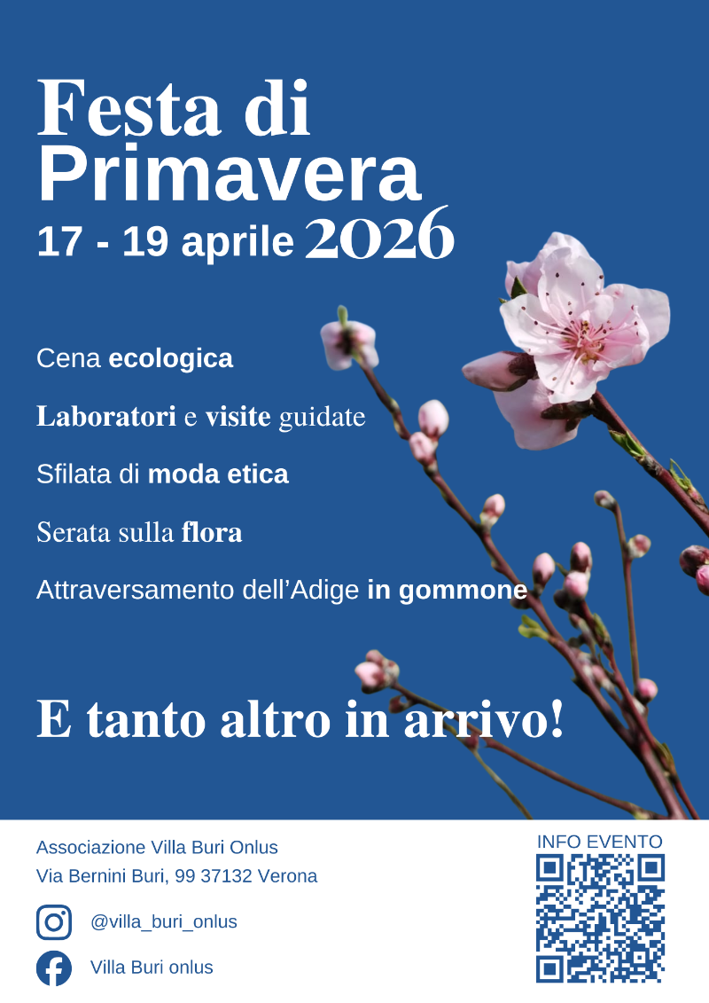 Torna anche nel 2026 uno degli appuntamenti più attesi della primavera veronese: la Festa di Primavera di Villa Buri, in programma dal 17 al 19 aprile all’interno dello splendido parco della villa. Tre giornate pensate per coinvolgere famiglie, cittadini e associazioni in un clima di condivisione, incontro e partecipazione.